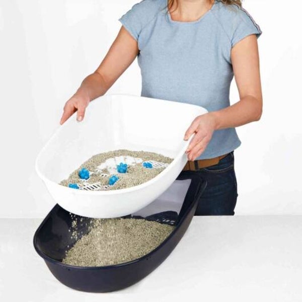 Die Katzentoilette Berto besteht aus drei Teilen 2 Unterschalen und 1 Siebeinsatz für ein schnelles und einfaches Reinigen.
