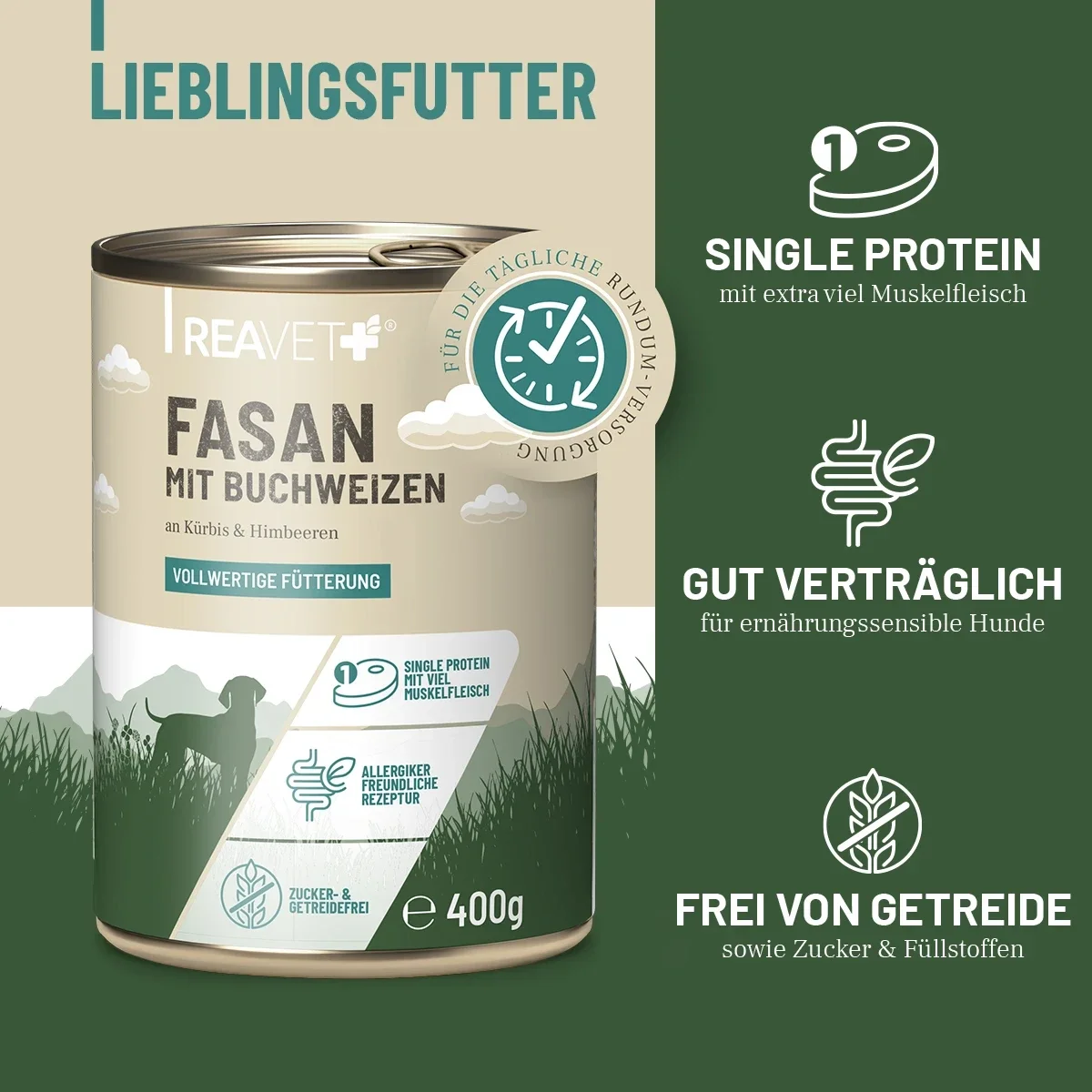 Hundenassfutter - Fasan mit Buchweizen an Kürbis & Himbeeren | 6 x 800g
