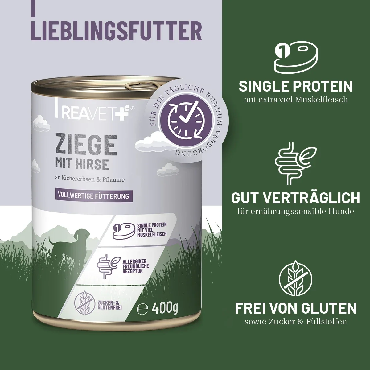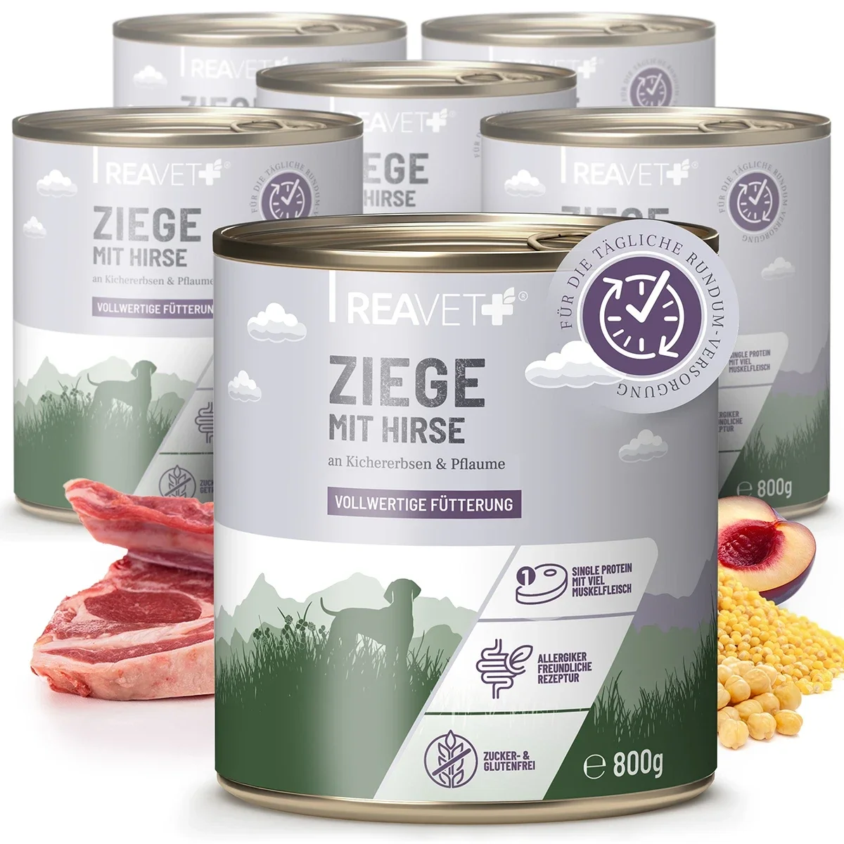 Hundenassfutter - Ziege mit Hirse an Kichererbsen & Pflaume | 6 x 800g