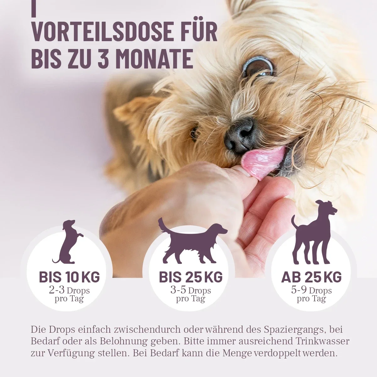 *Die Drops einfach zwischendurch oder während des Spaziergangs, bei Bedarf oder als Belohnung geben. Bitte immer ausreichend Trinkwasser zur Verfügung stellen. Bei Bedarf kann die Menge verdoppelt werden.