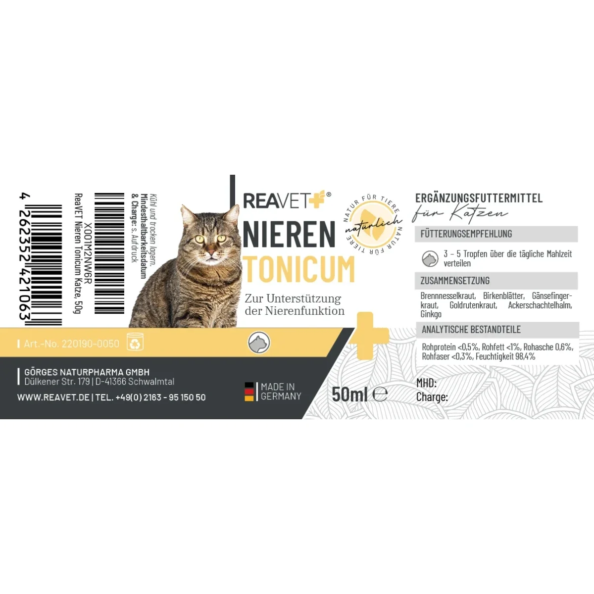 Unser rein pflanzliches REAVET Nieren Tonicum für Katzen wird mithilfe einer speziell für Katzen sorgfältig ausgewählten Kräutermischung gefertigt und schonend verarbeitet. Dabei wird aus den aufgekochten und filtrierten Kräutern ein hochwertiger, wirkungsstarker Saft, der ganz ohne Zuckerzusatz und Aromastoffe auskommt. Dieses Kräuter Tonicum für Katzen kann die natürliche Nierenfunktion der Katzen unterstützen und die Wasserausscheidung auf natürlichem Weg regulieren und fördern.