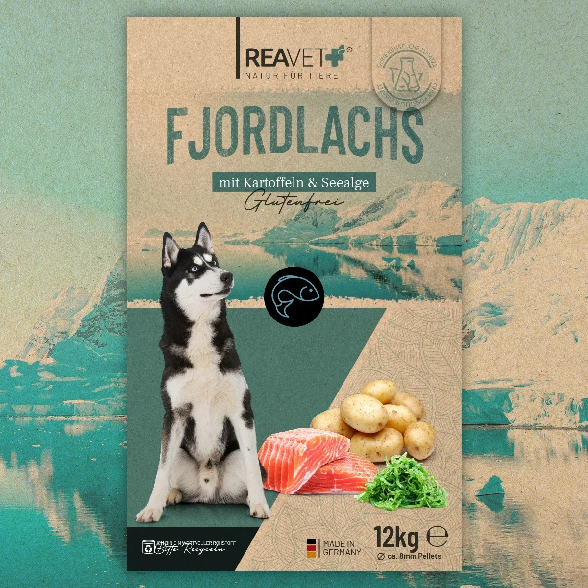 Die edle, leckere Komposition liefert hochwertige tierische Proteine und magenfreundliche Kohlenhydrate. Unser REAVET Hundefutter in der Sorte Fjordlachs besteht aus frischem Fisch und viel feinem Gemüse. Gutbekömmliche Früchte mit ihrem hohen Gehalt an Vitamin C optimieren die appetitliche Rezeptur. Mit einem herausragenden Geschmack durch den hohen Fischanteil und einer schonenden Zubereitung, bei welcher die wertvollen Inhaltsstoffe bestehen bleiben, überzeugt das Alleinfuttermittel auch Deinen Liebling.