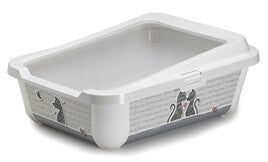 Diese Katzentoilette ist eine moderne, offene Katzentoilette in einem schönen, trendigen Design. Die Vorderseite und die Seiten des Katzenklos zeigen ein romantisches Design mit zwei verliebten Katzen.