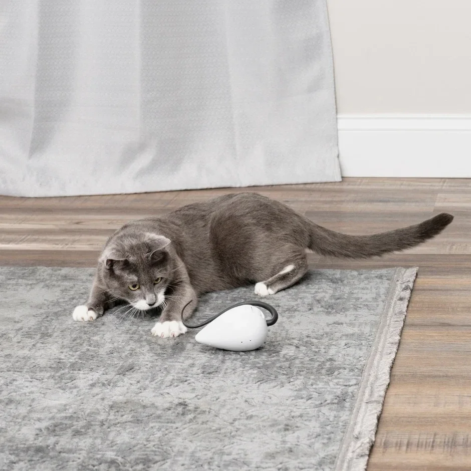 Der Rolorat hat rote Augen und einen langen Schwanz, der hin und her wedelt, um die Katze zu begeistern. Das Spielzeug macht sogar lustige Geräusche, damit die Katze weiß, dass es sich bewegt. Mit dem „Spielen-während-du-weg-bist“-Modus kann die Katze den ganzen Tag spielen, auch wenn niemand zu Hause ist.