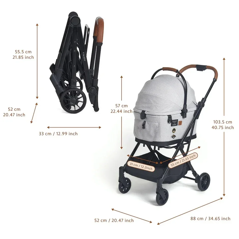 Der FikaGo Flytta Plus Pet Stroller in Grey Husky ist ein vielseitiger Hundebuggy mit abnehmbarer Tragetasche, der für Tierbesitzer entwickelt wurde, die Flexibilität und Funktionalität suchen. Dieses Modell kombiniert stilvolles skandinavisches Design mit Funktionalität in verschiedenen Situationen: Spazierengehen, Radfahren und Autofahren.