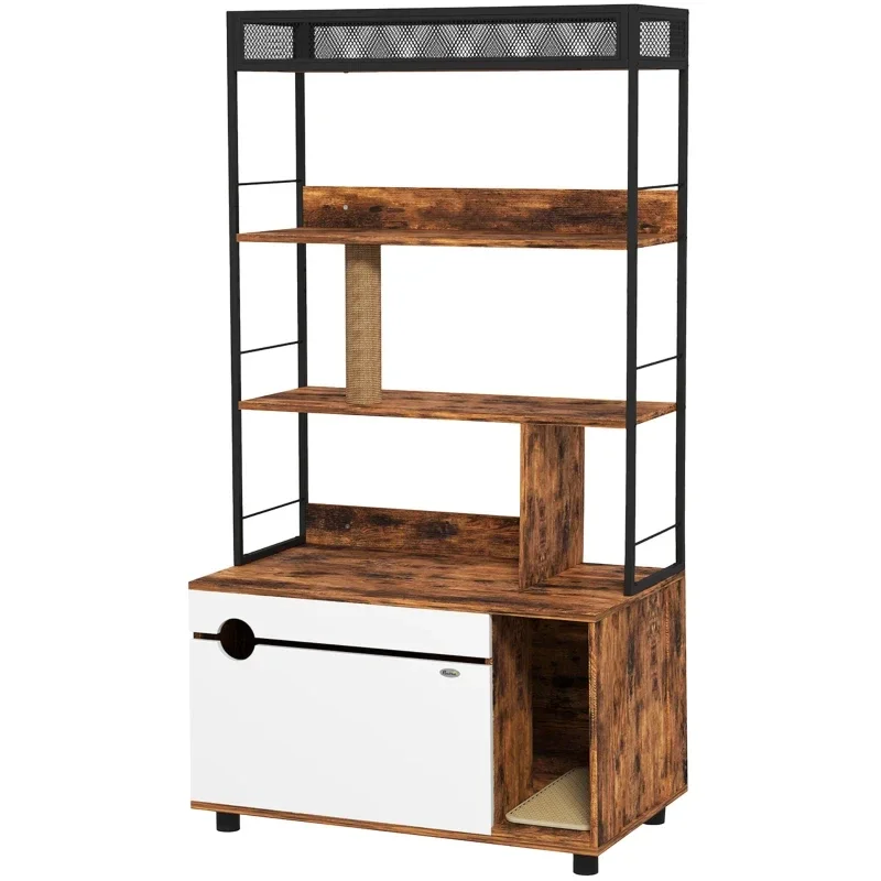 - Katzenkomfortzone: Ausgestattet mit einem Kratzbaum, bietet dieser integrierte Katzentoilette Schrank für Katzen einen privaten und komfortablen Ort, der die Bedürfnisse Ihrer Katze erfüllt und ihr einen privaten Rückzugsort bietet