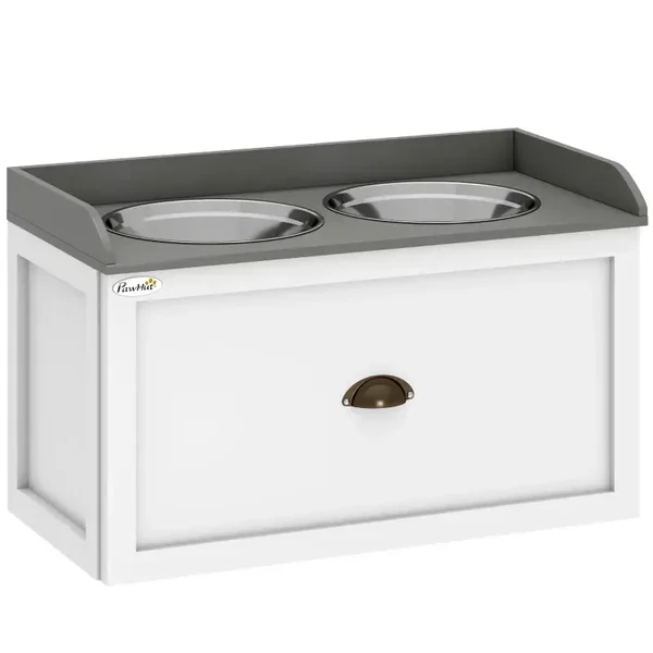 - Bequeme Fütterung: Der Futterbereich verfügt über erhöhte Ränder, die verhindern, dass Futter verschüttet wird, sodass der Bereich sauber bleibt und leicht zu reinigen ist. Die herausnehmbaren Edelstahlschalen sind spülmaschinenfest, was eine mühelose Pflege und eine lange Lebensdauer gewährleistet