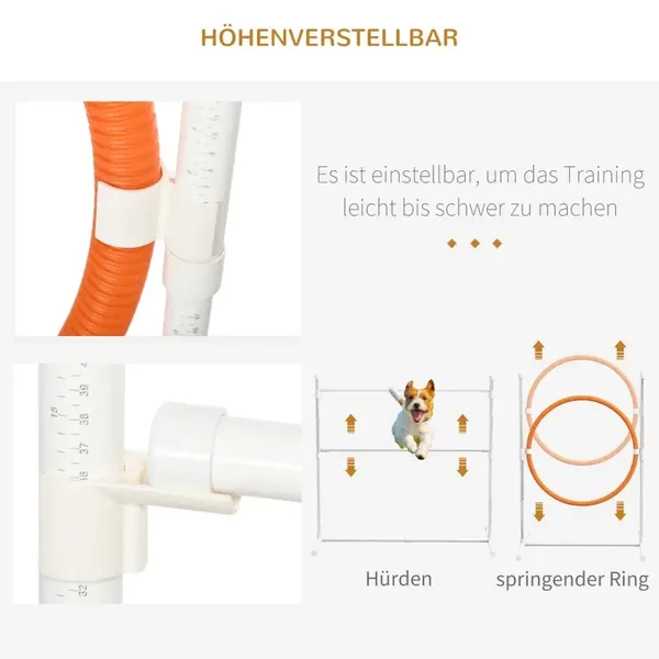 - Einstellbare Schwierigkeitsgrade: Passen Sie die Höhe des Sprungbretts (6-63 cm) und der Hürden (7-93 cm) an die Fähigkeiten Ihres Tieres an und verbessern Sie nach und nach seine Beweglichkeit. Nutzen Sie die mitgelieferte Pfeife für das Training zur Verbesserung der Kommunikation und der Reaktionsfähigkeit während der Trainingseinheiten