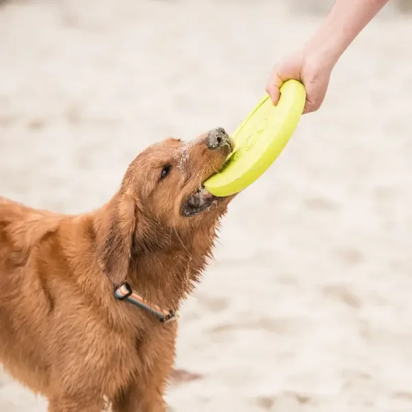 Der Zisc lässt sich leicht von ebenen Flächen aufheben und ist durch das Schwimmen und Hüpfen eine große Herausforderung. Darüber hinaus schwimmt der Zisc auf dem Wasser und ist spülmaschinenfest, wodurch er leicht sauber zu halten ist. Der Zogoflex Zisc wird auch für Welpen empfohlen, da das flexible Material die Zähne nicht beschädigt.