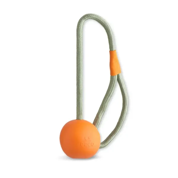 Der Beco Slinger Ball ist ein Naturkautschukball an einem robusten, recycelten Seil. Der federnde Ball liegt gut in der Hand und das Seil sorgt für zusätzliche Wurfweite. Ideal für Apportierspiele. Das Gummi des Balls duftet zart nach Vanille.